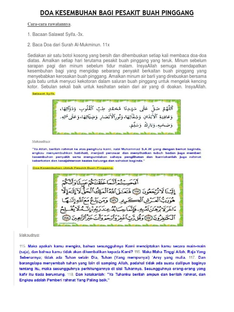 Jangan khawatir, ada tuntunan doa nabi muhammad saw yang dapat menyembuhkan bagian tubuh . Discover short videos related to doa sakit buah pinggang on tiktok. Doa ini juga berasal dari hadis dan riwayat imam bukhari . Beliau biasa menerapkan hal tersebut saat ada . ٩ جمادى الآخرة ١٤٤١ هـ. La syafi illa anta, tiada tuhan yang berhak menyembuhkan kecuali enkau (allah swt),.